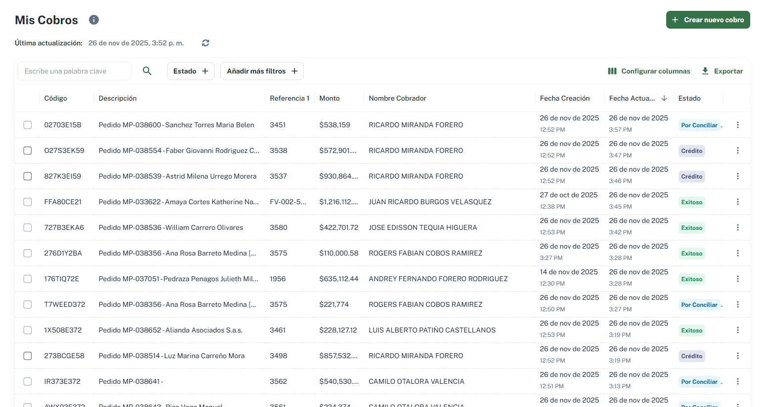 Referencia 1 por defecto: Ahora esta referencia se muestra automáticamente en la vista principal, facilitando la identificación rápida de cada cobro.